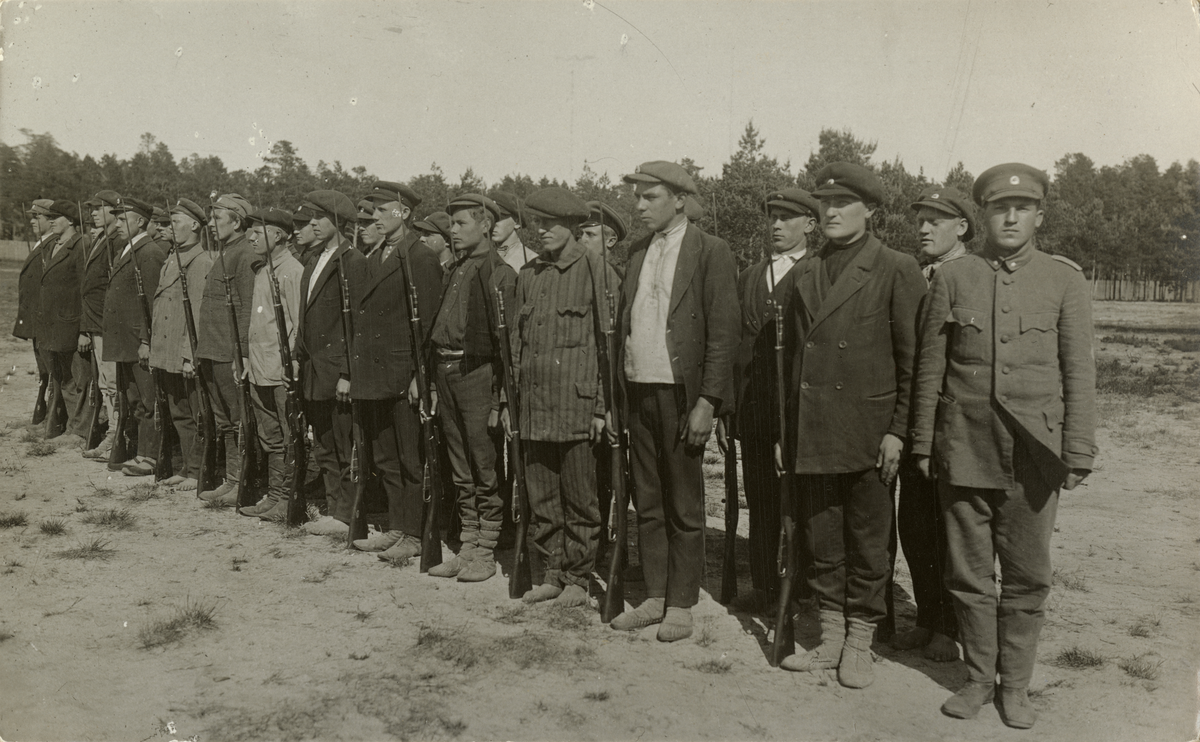 Titel: Text i fotoalbum: "Estniska folkhären innan de engelska uniformerna kommo."