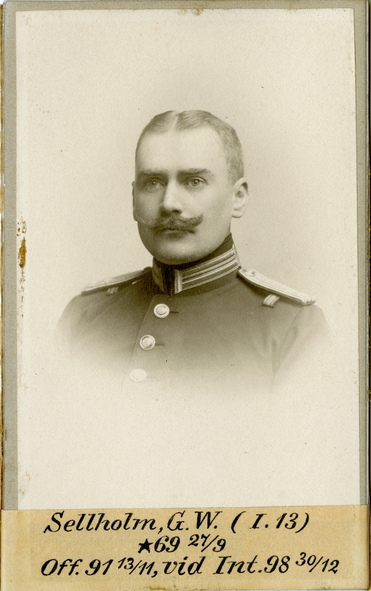 Porträtt av Gunnar Wilhelm Sellholm, officer vid Dalregementet I 13 och Intendenturkåren.