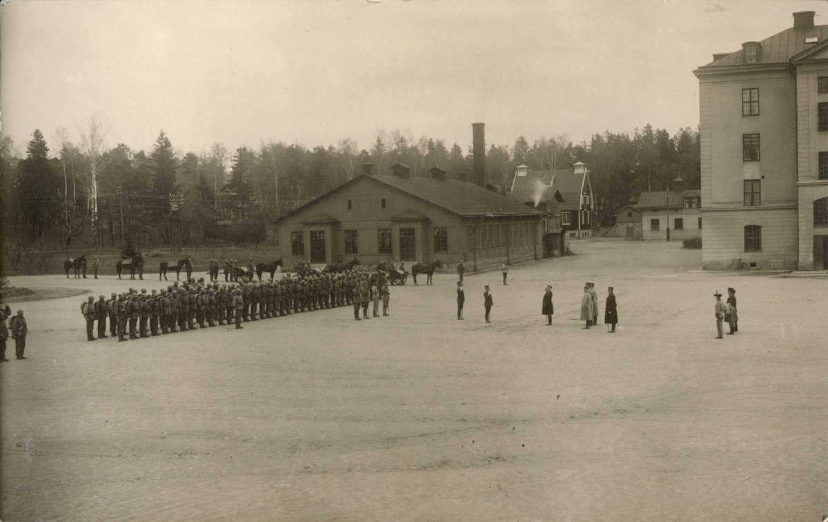 Bildtext: "Den 9. maj inspekterade farbror Pehr H-t (Hasselrot) I 26 (för andra gången). Nu gällde det stamskolorna."