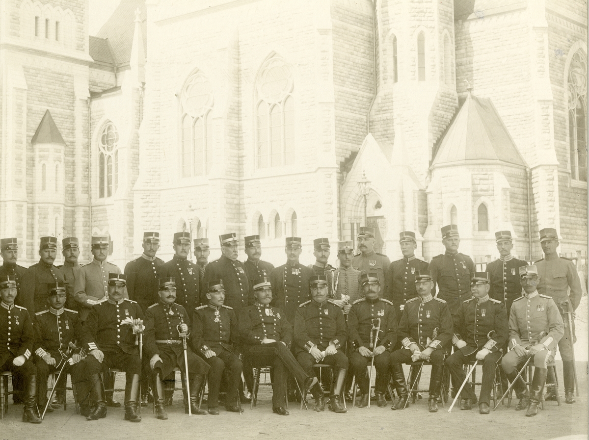 Titel: IV. arméfördelningen fältövningar på Södertörn utanför Oskarskyrkan i Stockholm 1905.