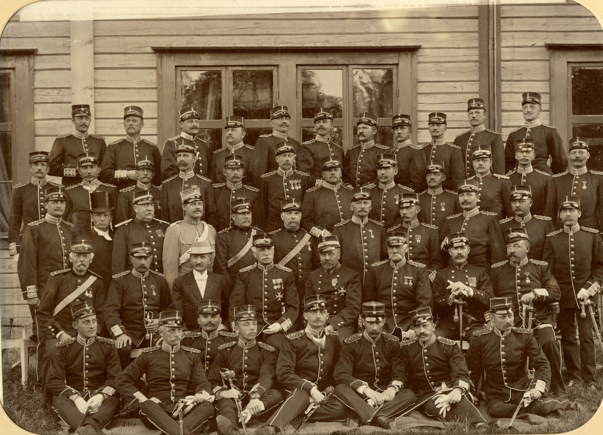 Grupporträtt av officerare vid Livregementets grenadjärer I 3 i Örebro.