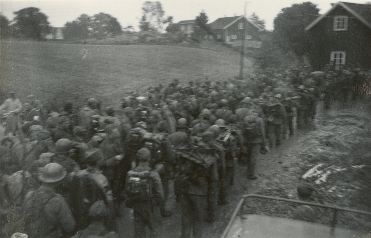 Titel: Soldater från Södermanlands regemente I 10 på marsch.