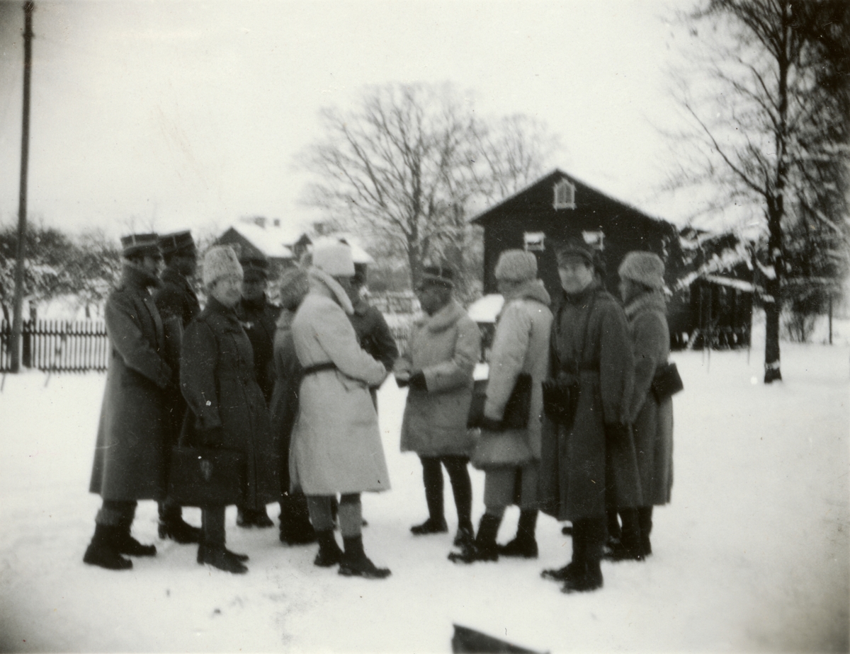 Titel: Text i fotoalbum: "Taktiskt frysning Säby 1933. Kritik med mer eller mindre intresserade åskådare".