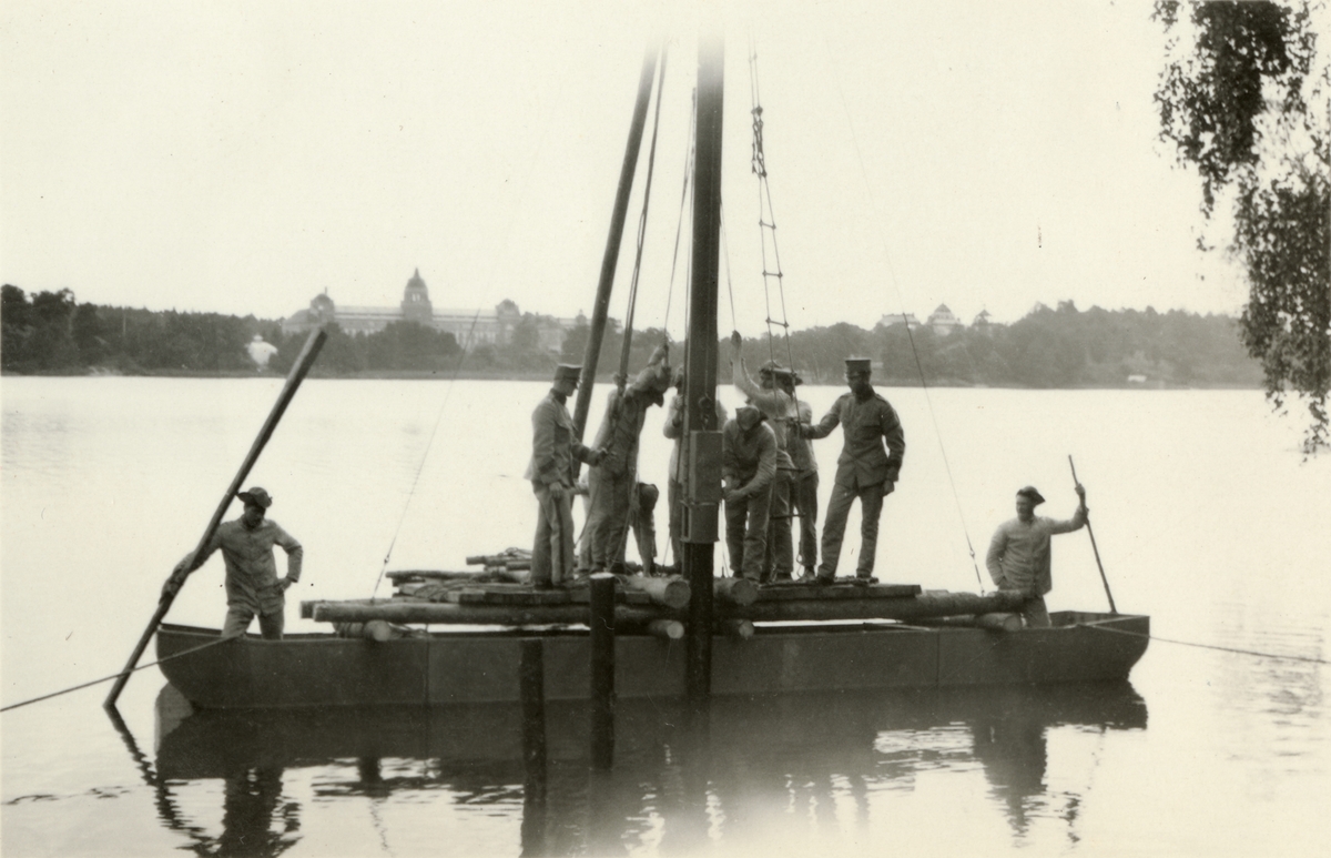 Text i fotoalbum: "Brobyggnad i Storvreta under mötet 1931".