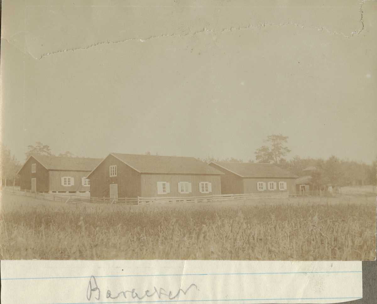 Titel: Baracker vid Hälsinge regementes övningsplats Mohed. Dubblett till AMA.0011114.