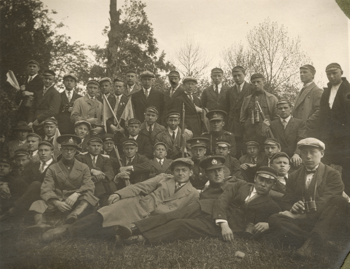 Titel: Gruppbild med soldater och civila.