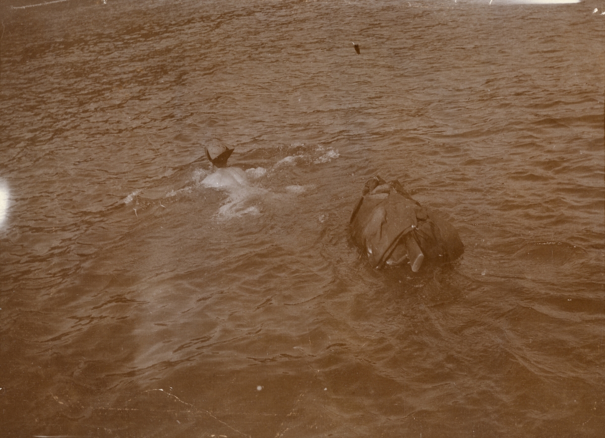 Text i fotoalbum: "Infanteristen satt att taga sig över mindre vattendrag, (t ex. Vättern)."