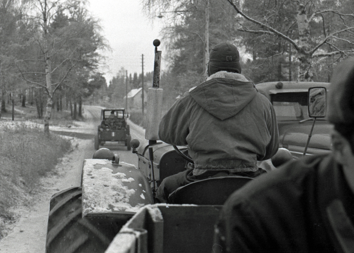 Förflyttning med traktorer i I21 Västernorrlands Regemente, Sollefteå.
