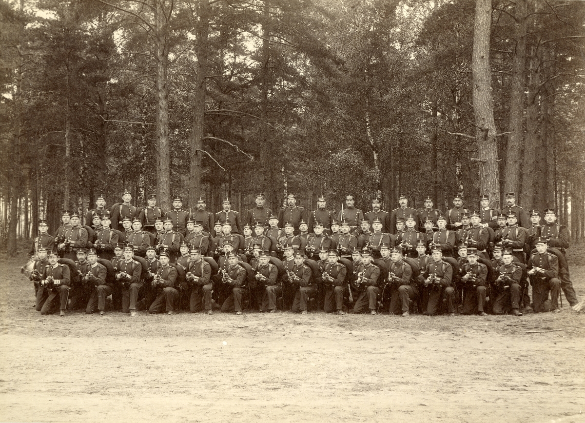 Grupporträtt av officersvolontärer vid Karlsborg 1895.