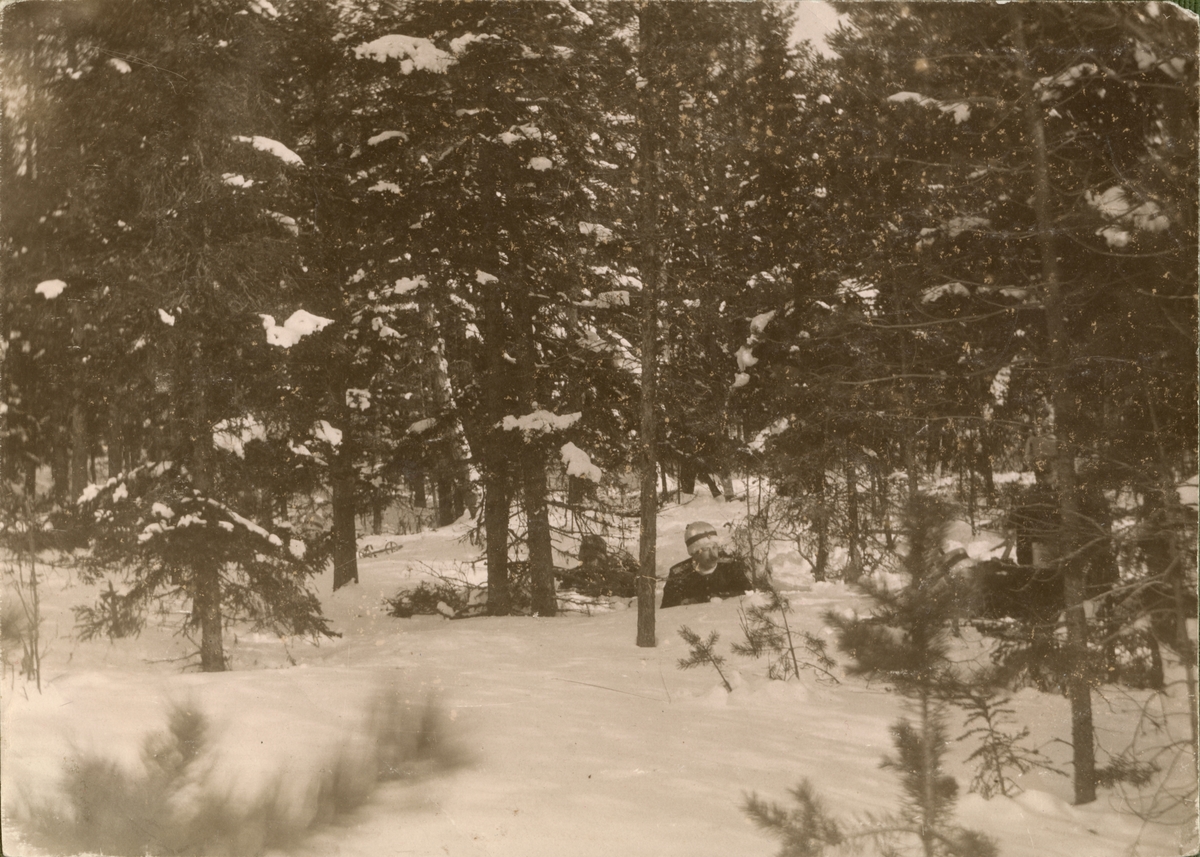 Titel: Text i fotoalbum: "Manöver i trakten af Piteå vintern 1906. Norén i skyttelinjen."