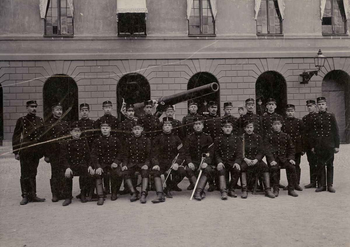Titel: Grupporträtt av Svea artilleriregemente A 1 från 1890-talet.