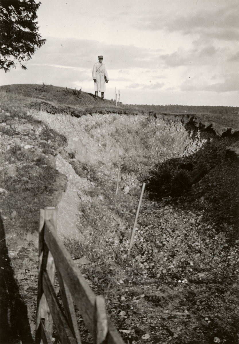 Text i fotoalbum: "Brobyggnad i Storvreta under mötet 1931. Ett elegant dike gjordes på västra stranden av Fyrisån".