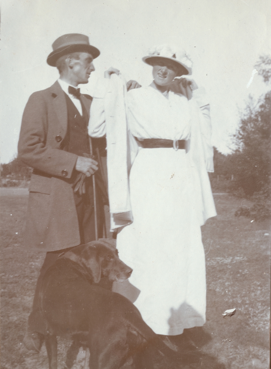 Titel: En man och en kvinna trädgården.