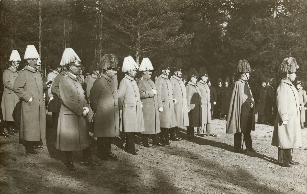 På bild, från höger: General Jungstedt, Major Rignell, Öfverstelöjnt. Murray Ing 3, Öfverste Thorssell Ing 1, Öfverste Bergman A 9, Öfverste Torén A 1, Öfverste Fallenius I 2, Öfverste Hult I 1, Kommendanten öfverste Ankarcrona, Öfverste Rosenblad K 2. Örvestelöjnt. Ribbing I 2.