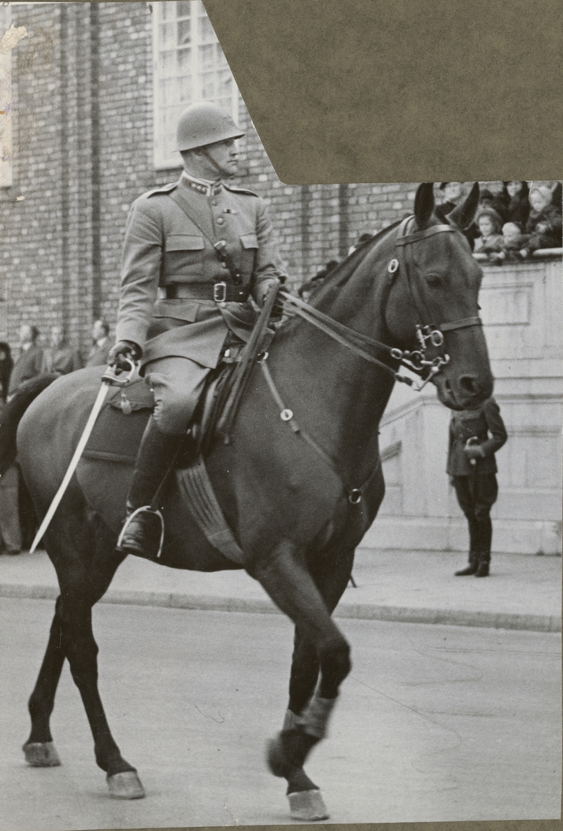 Överste vid Göta livgarde I 2 till häst. Åskådare ser på i bakgrunden.