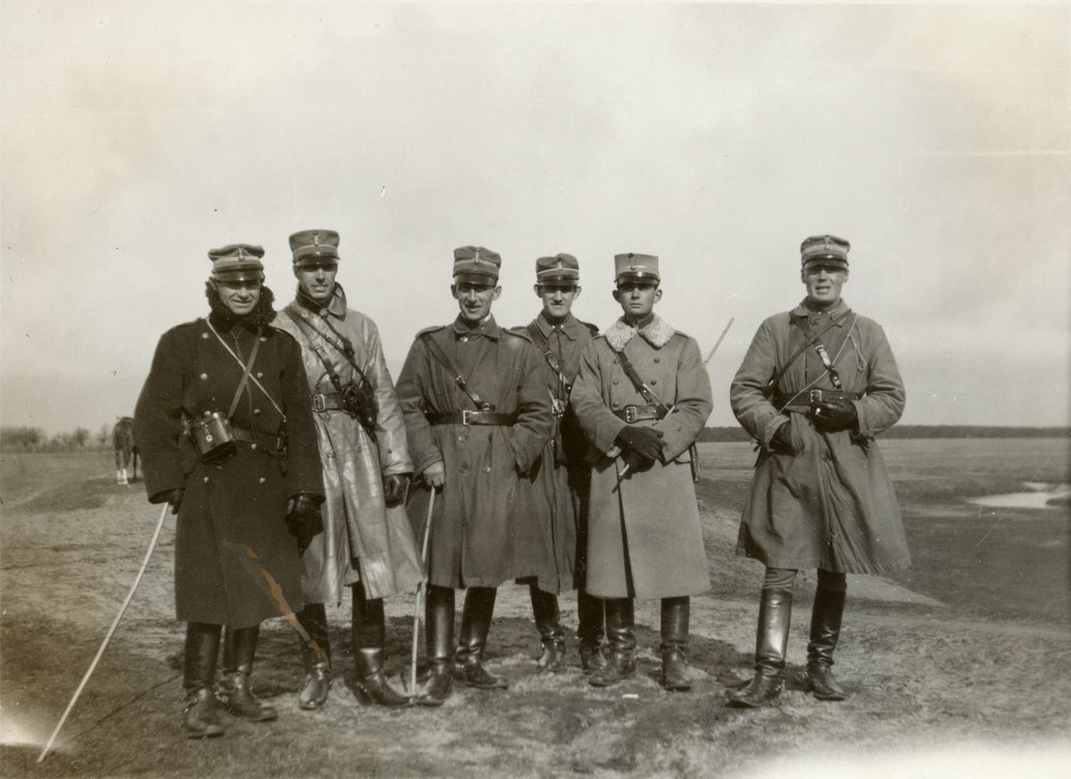 Titel: Text i fotoalbum: "Förbindelsekursen 1920". Soldater på övningsplats.