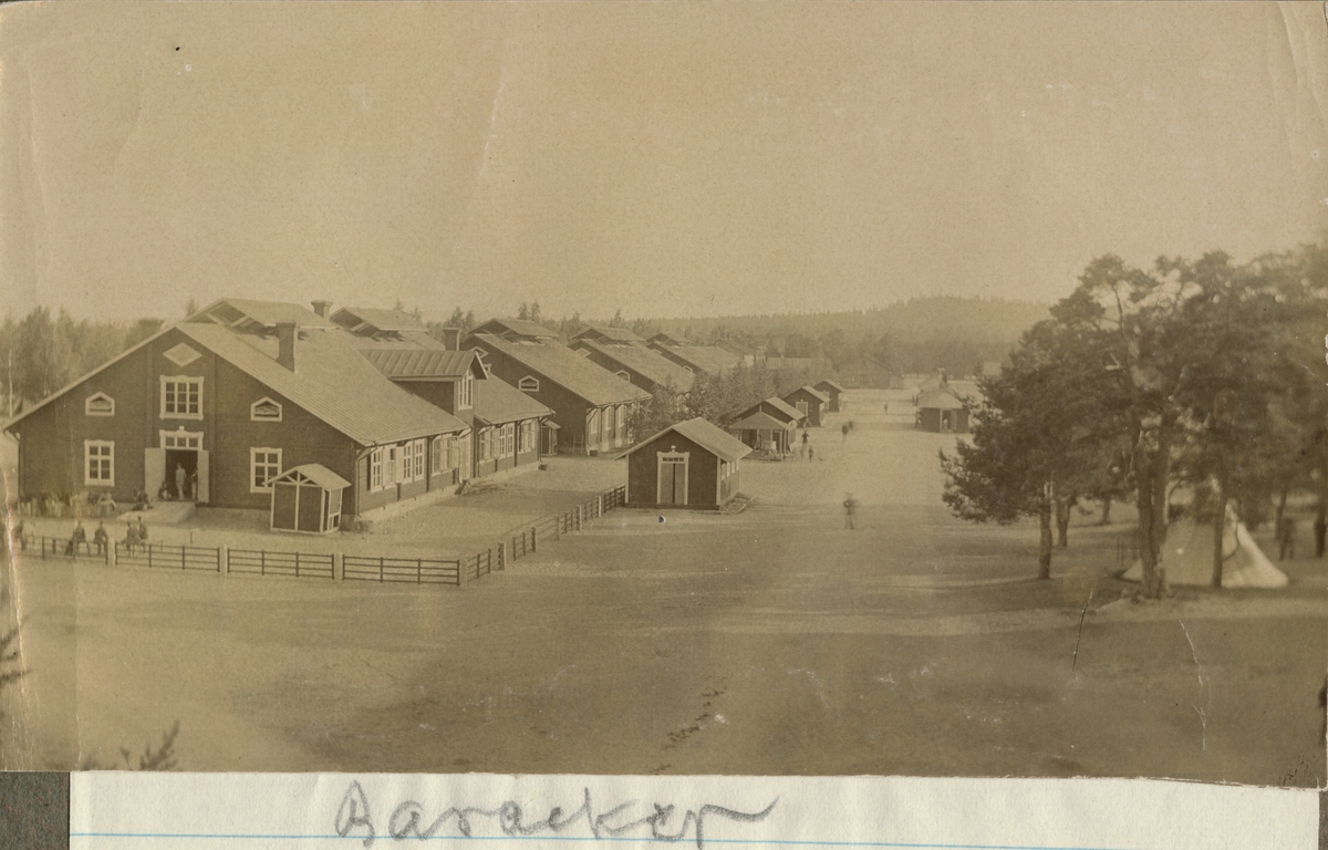 Titel: Baracker vid Hälsinge regementes övningsplats Mohed.