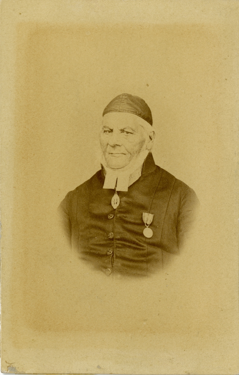 Text på baksidan: "Carl Johan Holm, född 1781. Var krigspräst 18 år, först vid Savolax jägare, sedan vid Hälsinge regemente. Bevistat 2 krig och varit med i 11 drabbningar. Var i 1808 års krig tillika kompanidisponent för Läppävirda kompani som bestod av 150 man, varav vid krigets slut återstod endast 3 man. Utgivit tryckta berättelser om nämnda fältslag".