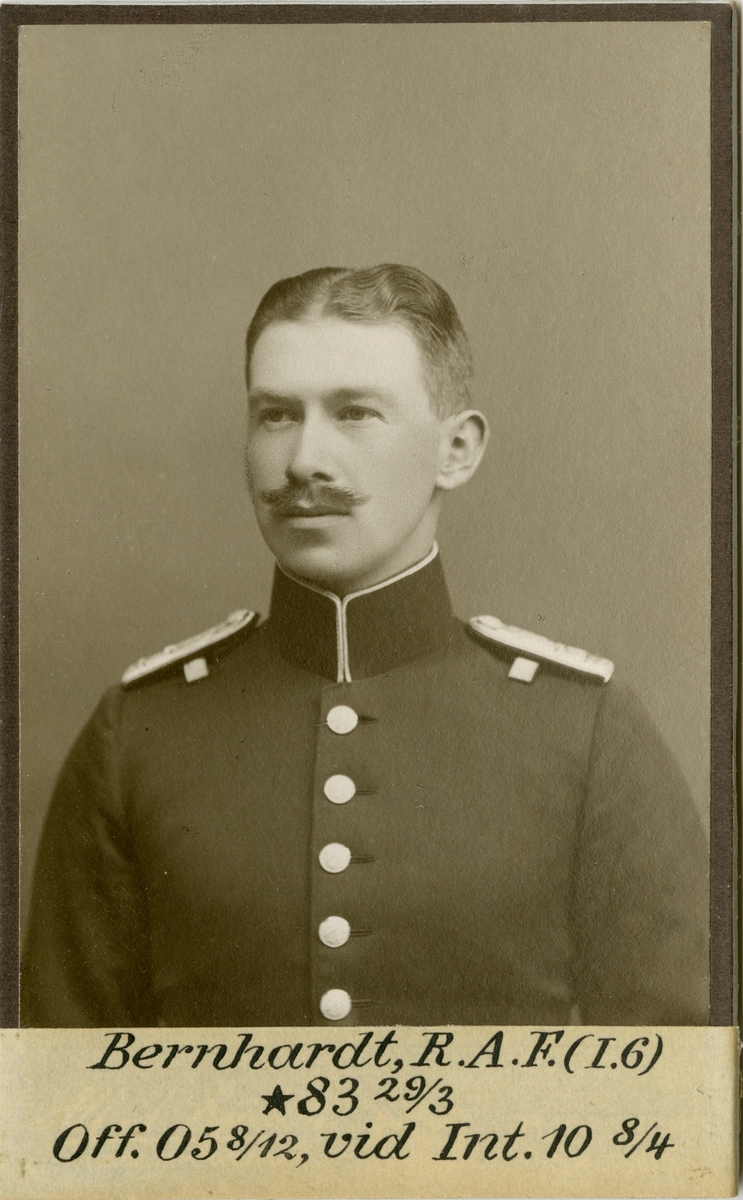Porträtt av Rolf Anton Fredrik Bernhardt, officer vid Västgöta regemente I 6 och Intendenturkåren.