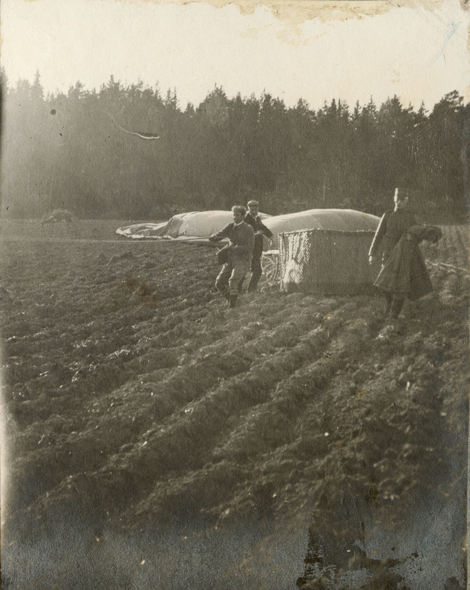 Titel: Luftballong har landat på åker.