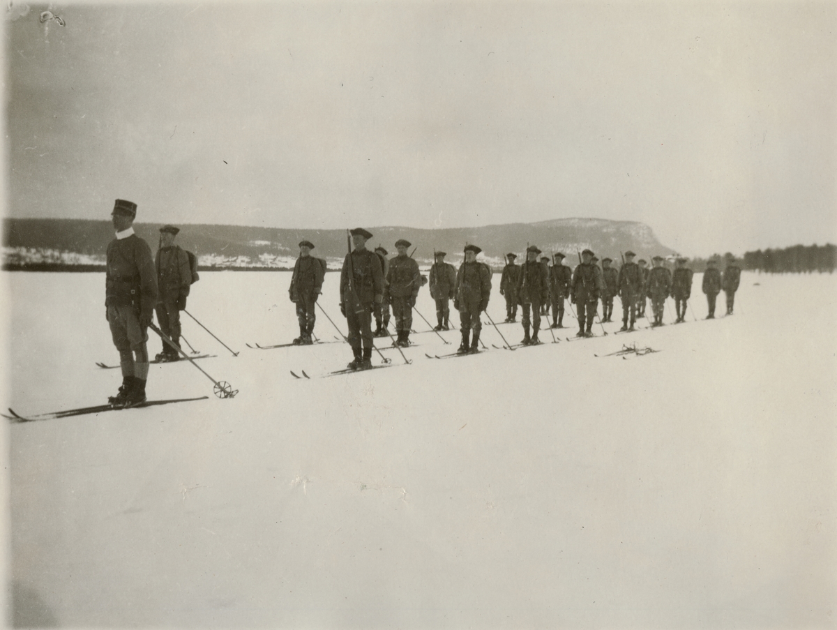 Titel: Uppställd trupp under vinterövning.