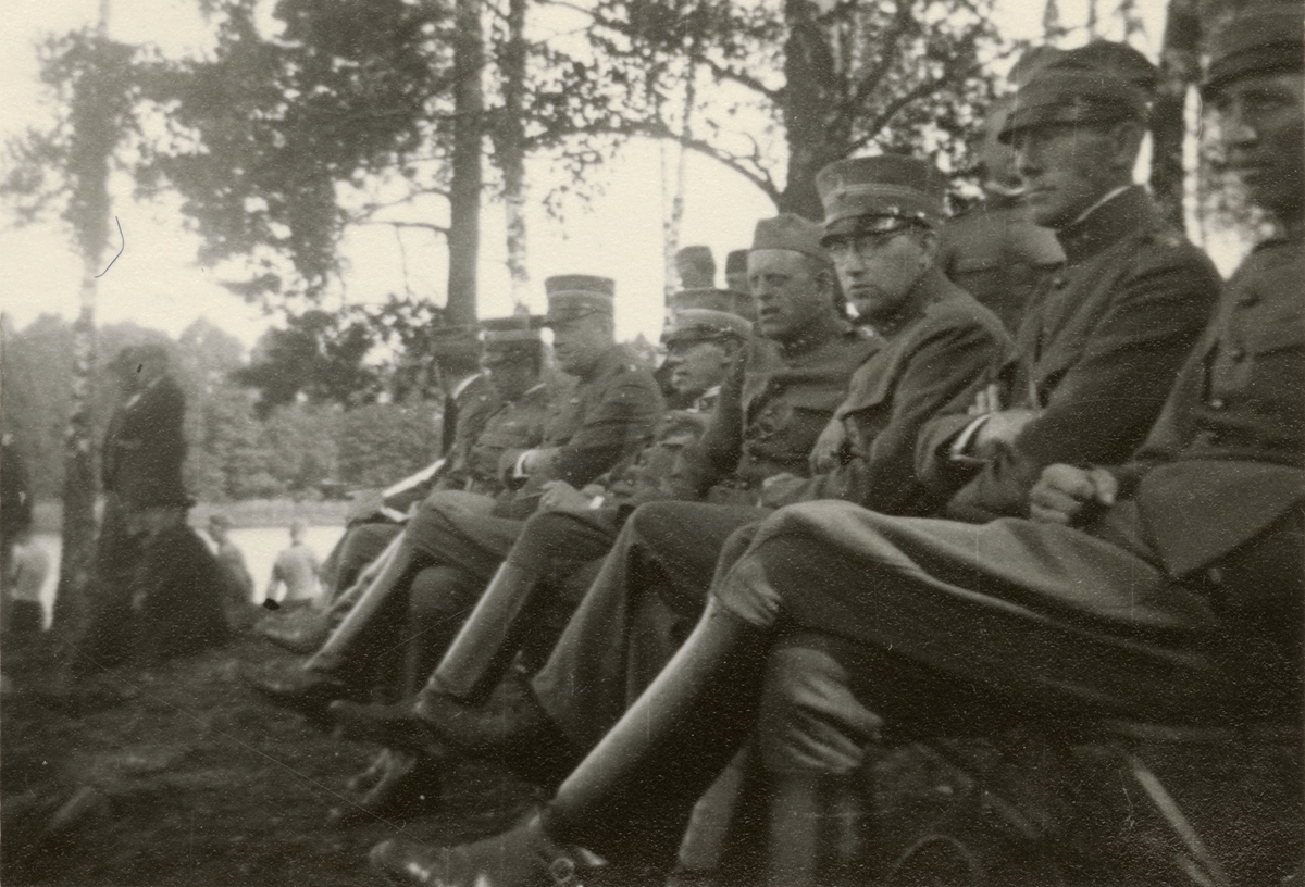 Titel: Text i fotoalbum: "Sommarmarschen 1937 till Varnum (norr Ulricehamn). Tävlingar i lägret. Åskådare".