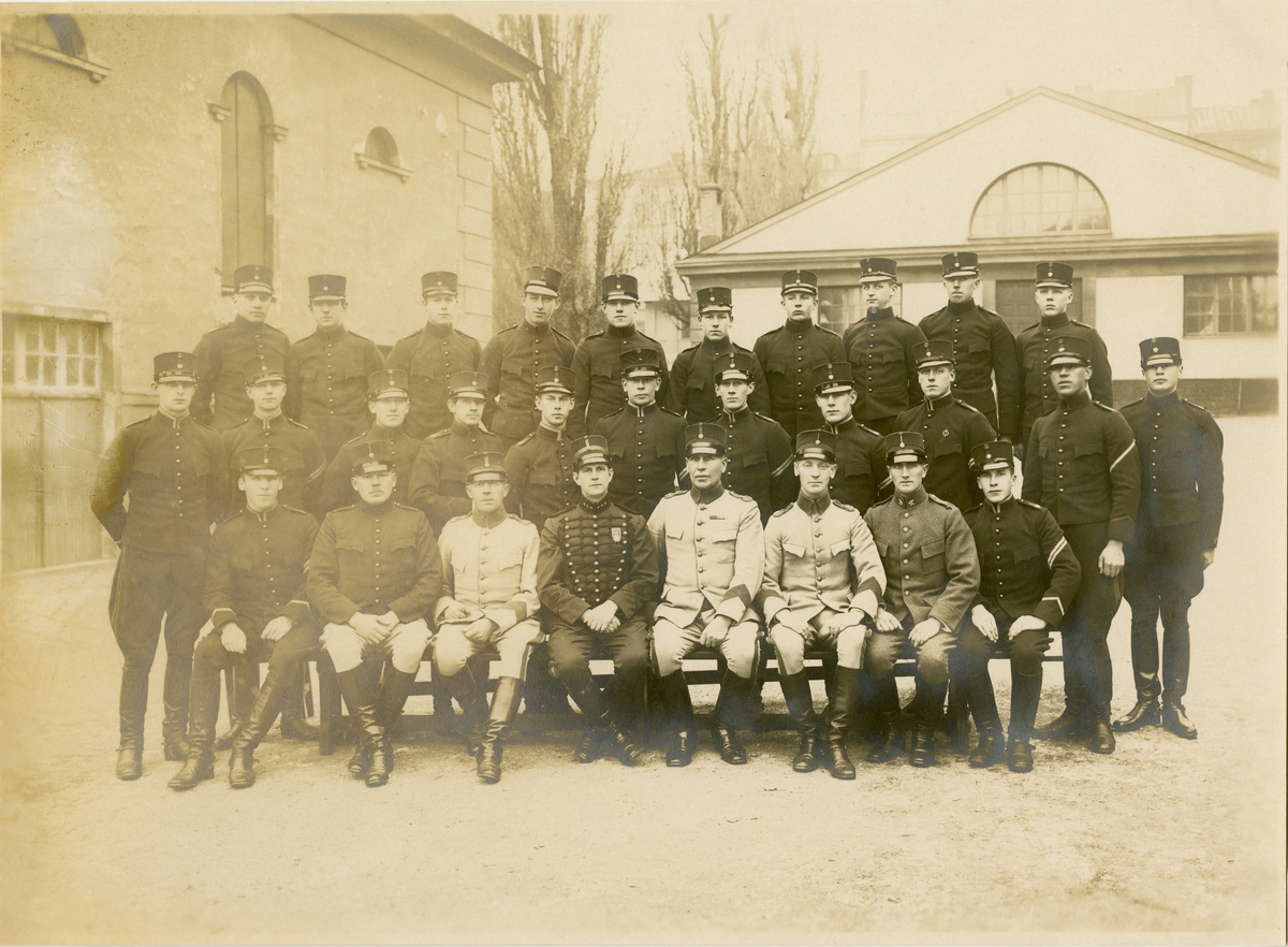 Grupporträtt av officerare och soldater vid Positionsartilleriregementet A 9.