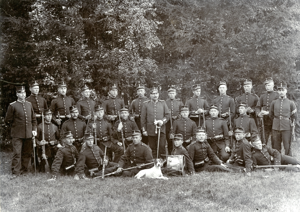 Grupporträtt av soldater vid Norra Skånska infanteriregementet I 24.