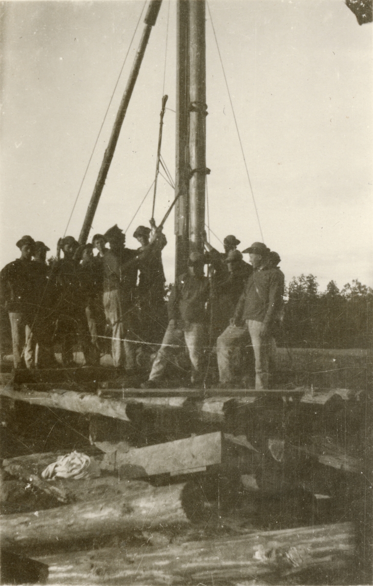 Titel: Text i fotoalbum: "Brobygget vid Fågelbro (Strömma kanal). Pålning".