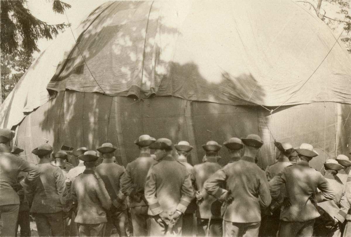 Titel: Elever från Krigsskolan Karlberg under luftballongövning.