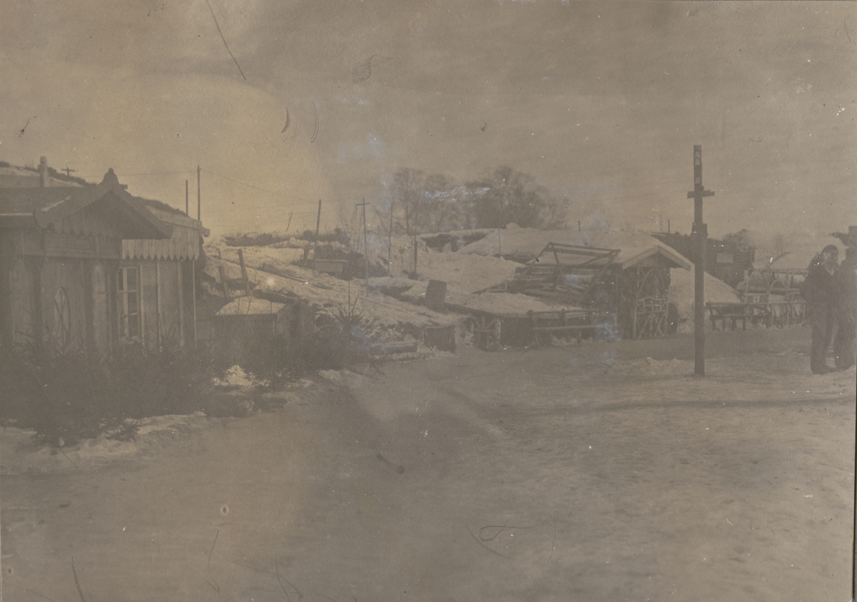 Titel: Text i fotoalbum: "Januari 1917. Officers - och 2 manskapsunterstand vid Olai"