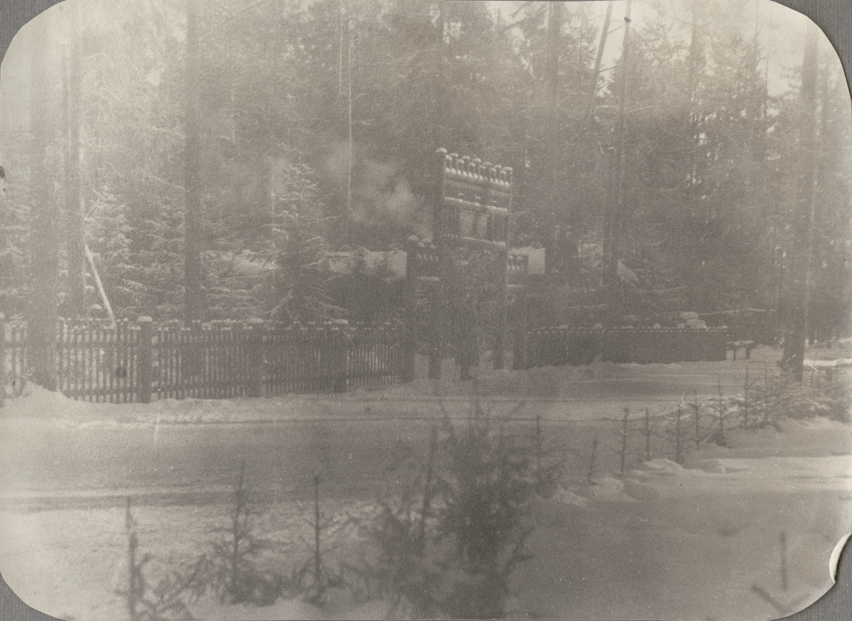 Text i fotoalbum: "Januari 1917 vid Olai. Vårt hvilokvarter "Wehrmannsruh". Wehrmannsruh byggdes helt och hållet af vårt eget manskap under hösten 1916 och vintern 1917. Omnämndes sedan såsom mönsteranläggning.