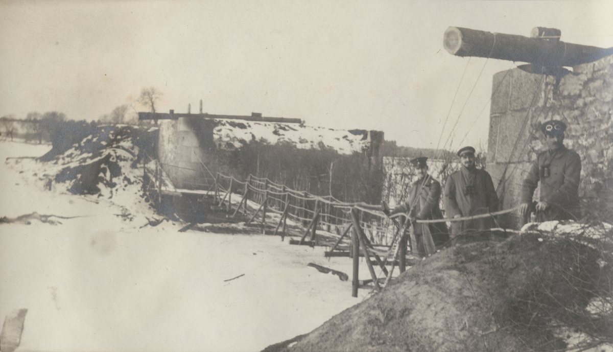 Titel: Text i fotoalbum: "Olai ställningen mars 1916. Major Folck, oberlt. Ledou, feldarzt Swartz".