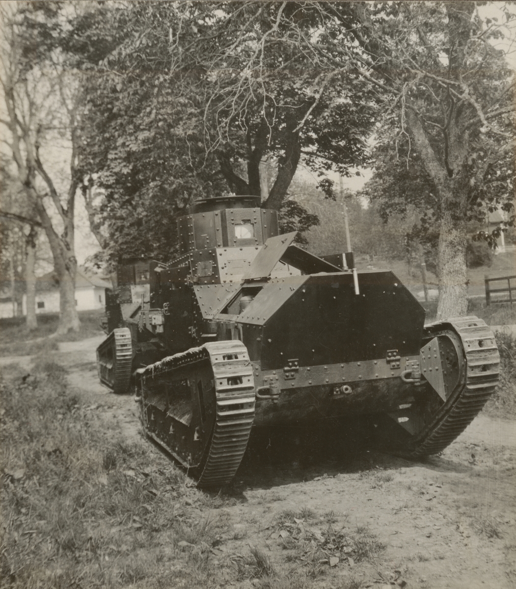 Titel: Två stridsvagnar m/1921 (eller m/1921-1929) på landsväg. Göta livgardes stridsvagnsbataljon år 1928-1930.