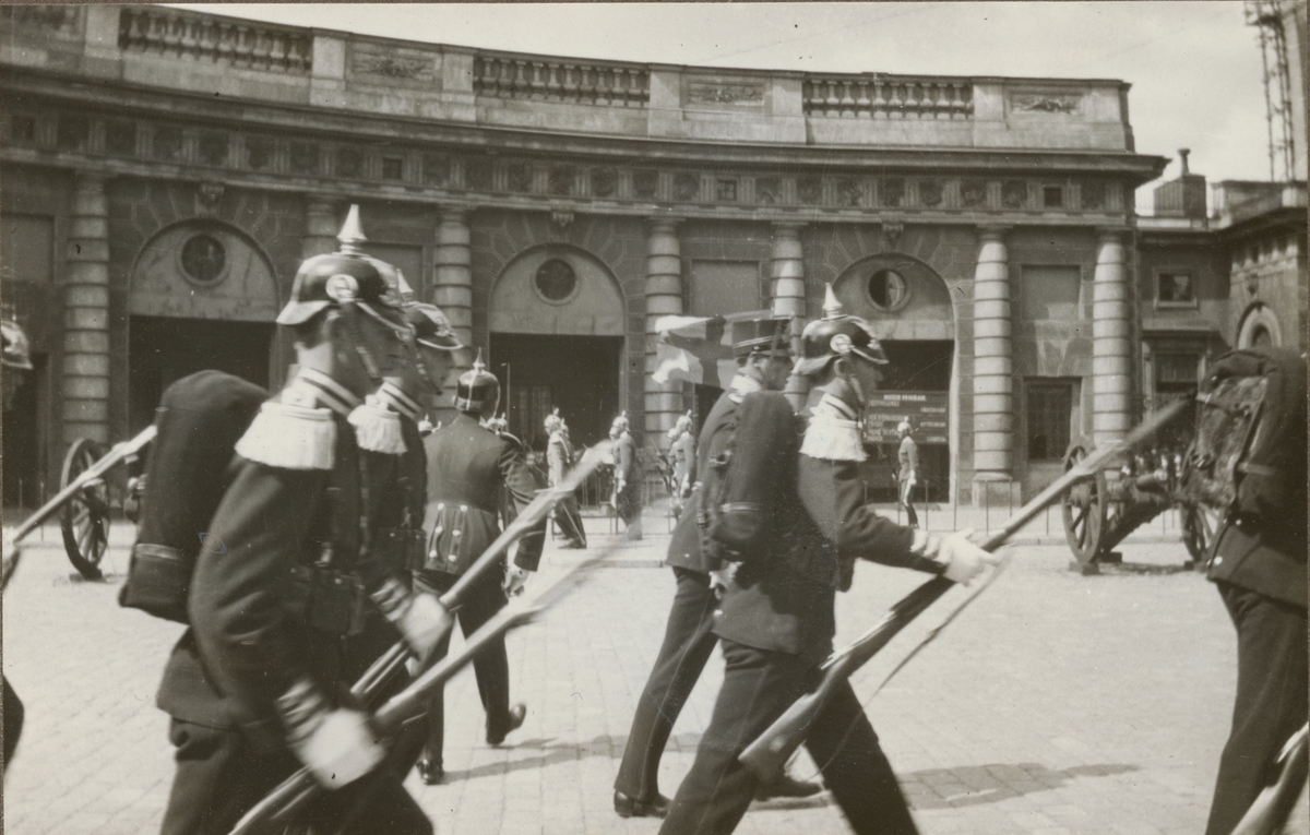 Högvakt på kungliga slottet i Stockholm. Göta livgardes stridsvagnsbataljon, 1928-1930, 1:a kursen.