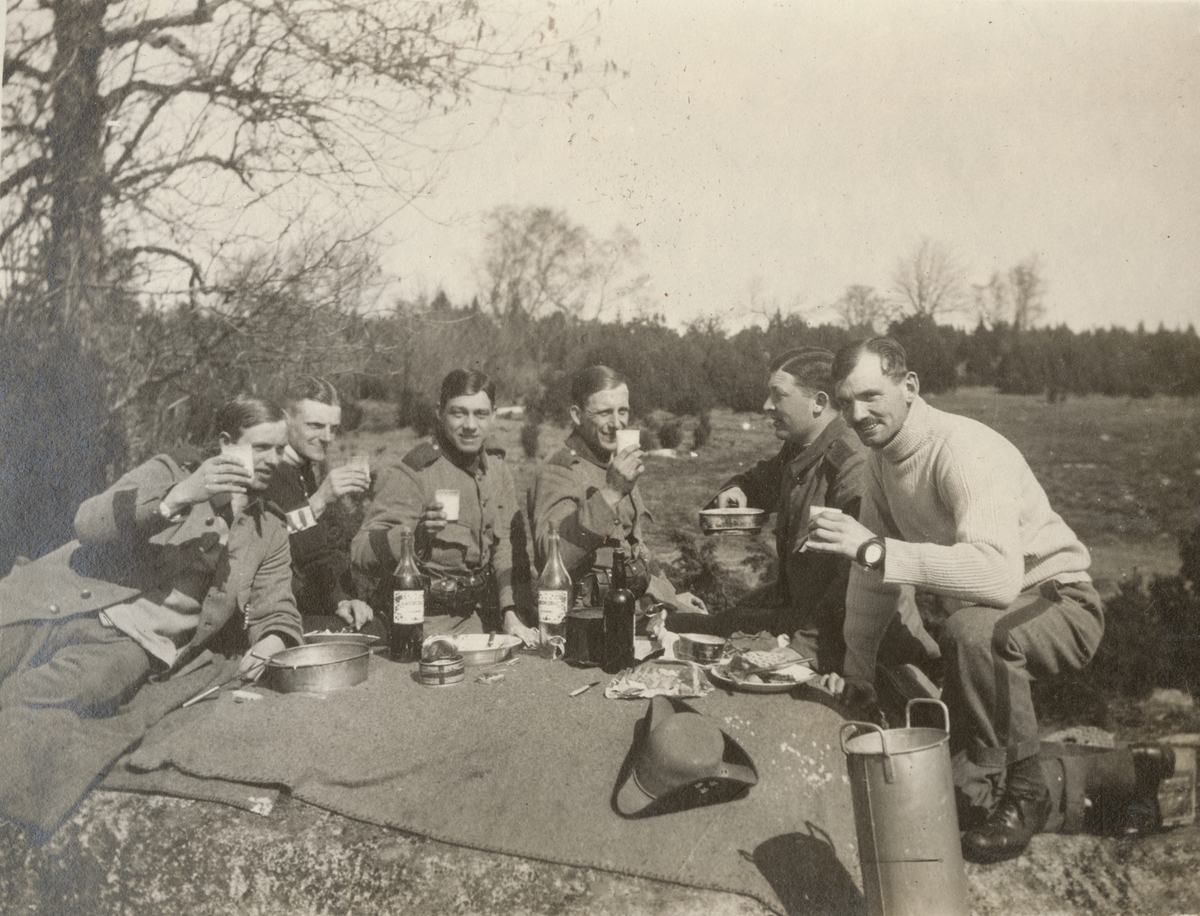 Titel: Fältlunch med soldater från Göta livgarde I 2.