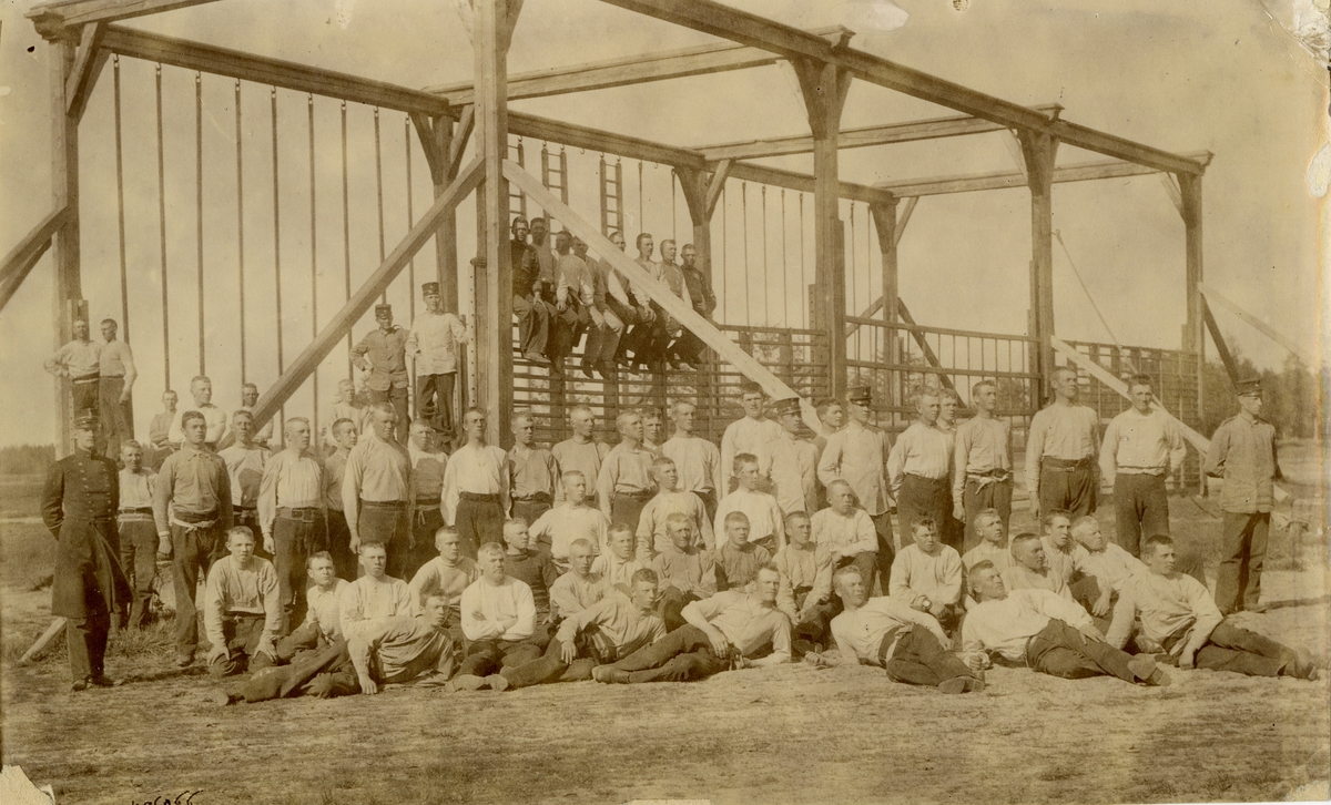 Grupporträtt av soldater och officerare vid Hallands regemente I 16, 1903.