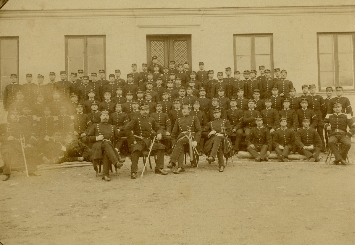 Titel: Grupporträtt av Svea livgardes underofficers- och korpralskola 1887.
