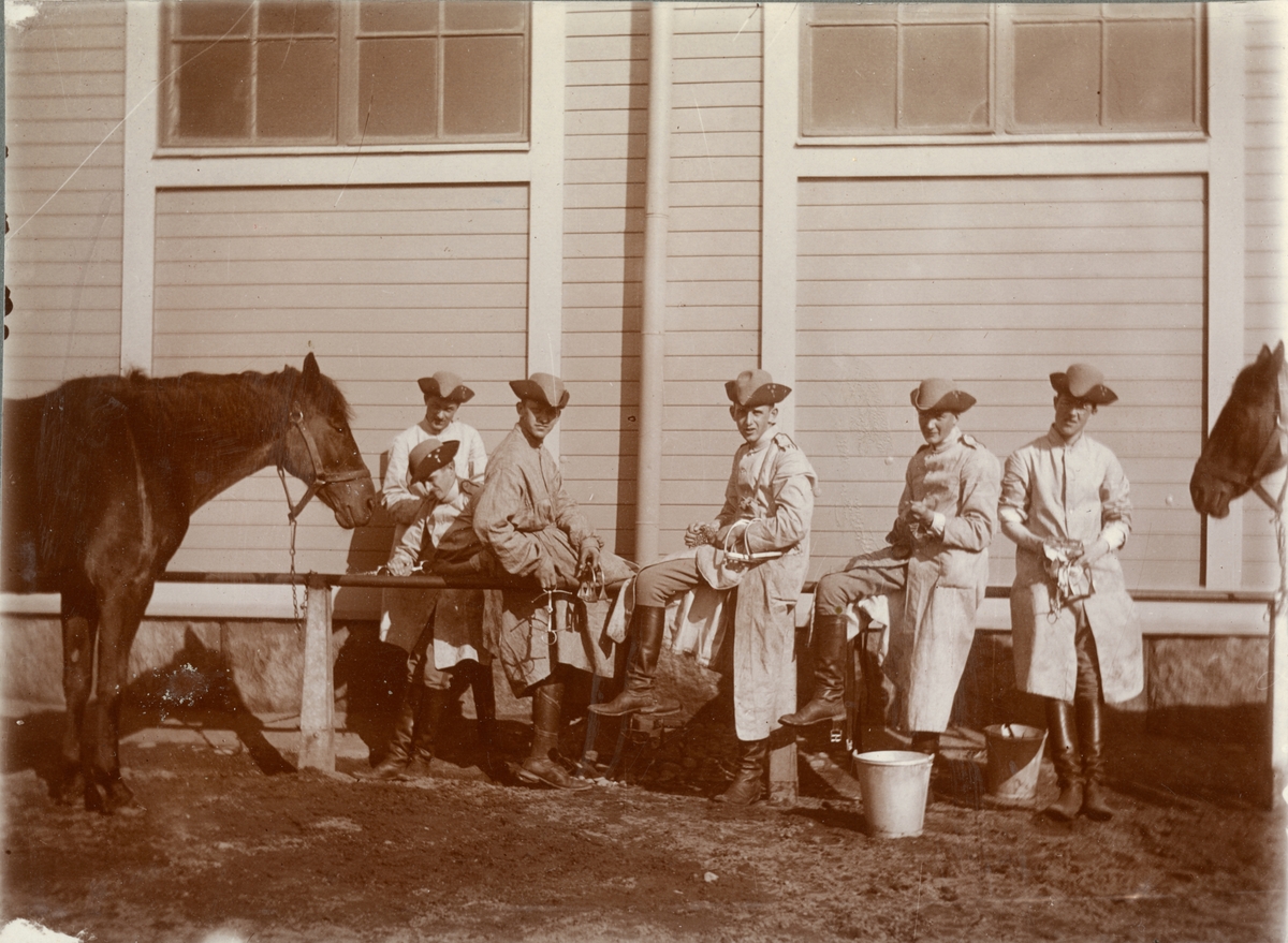 Text i fotoalbum: "Ännu samvetsgranna och plikttrogna. Bellander, R. von Essen, Helleborg, Bonnert, Natt o Dag, H. von Essen".