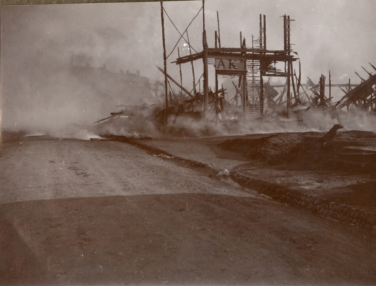 Titel: Text i fotoalbum: "Den stora branden i Umeå. Ej mycket kvar".