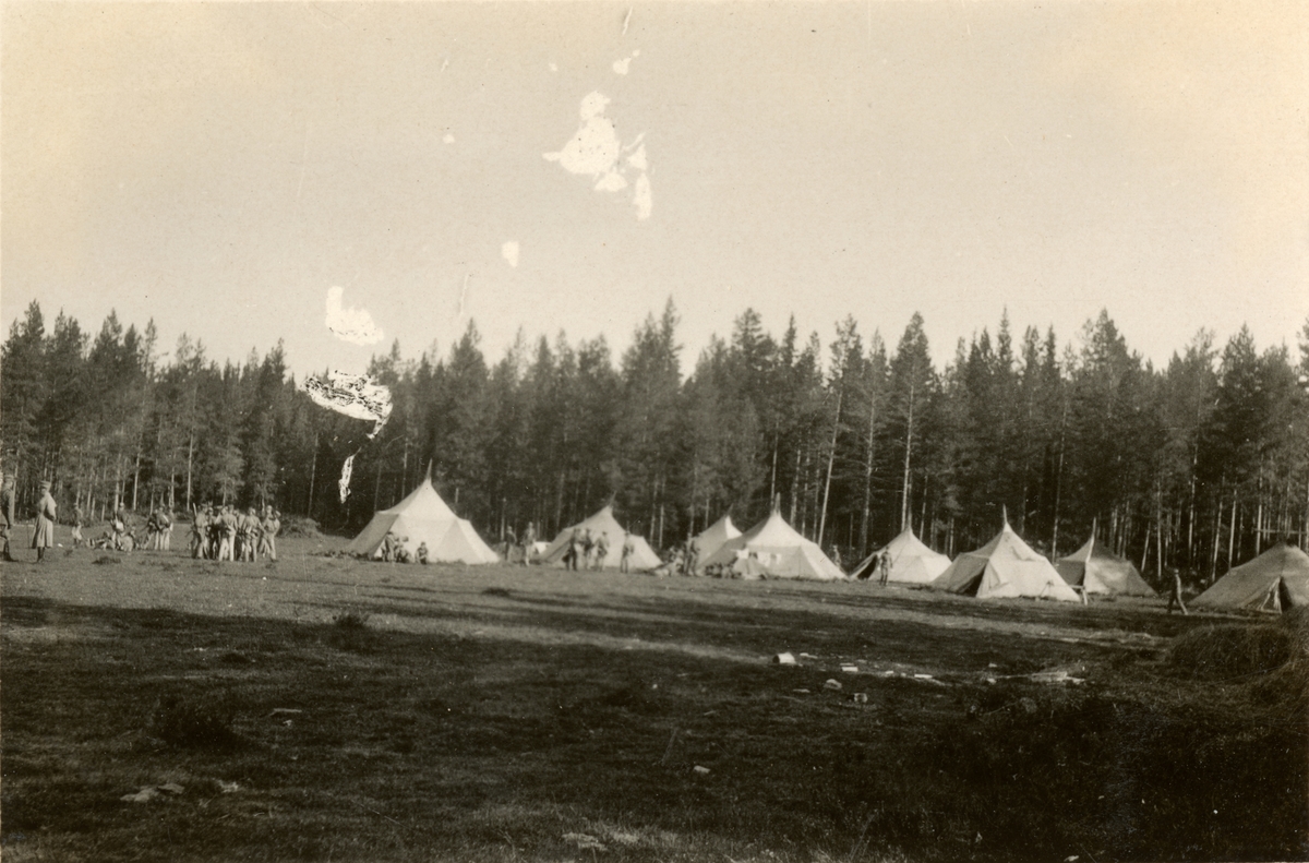 Text i fotoalbum: "Sommarövningar i Lit aug. 1929. Lägret".