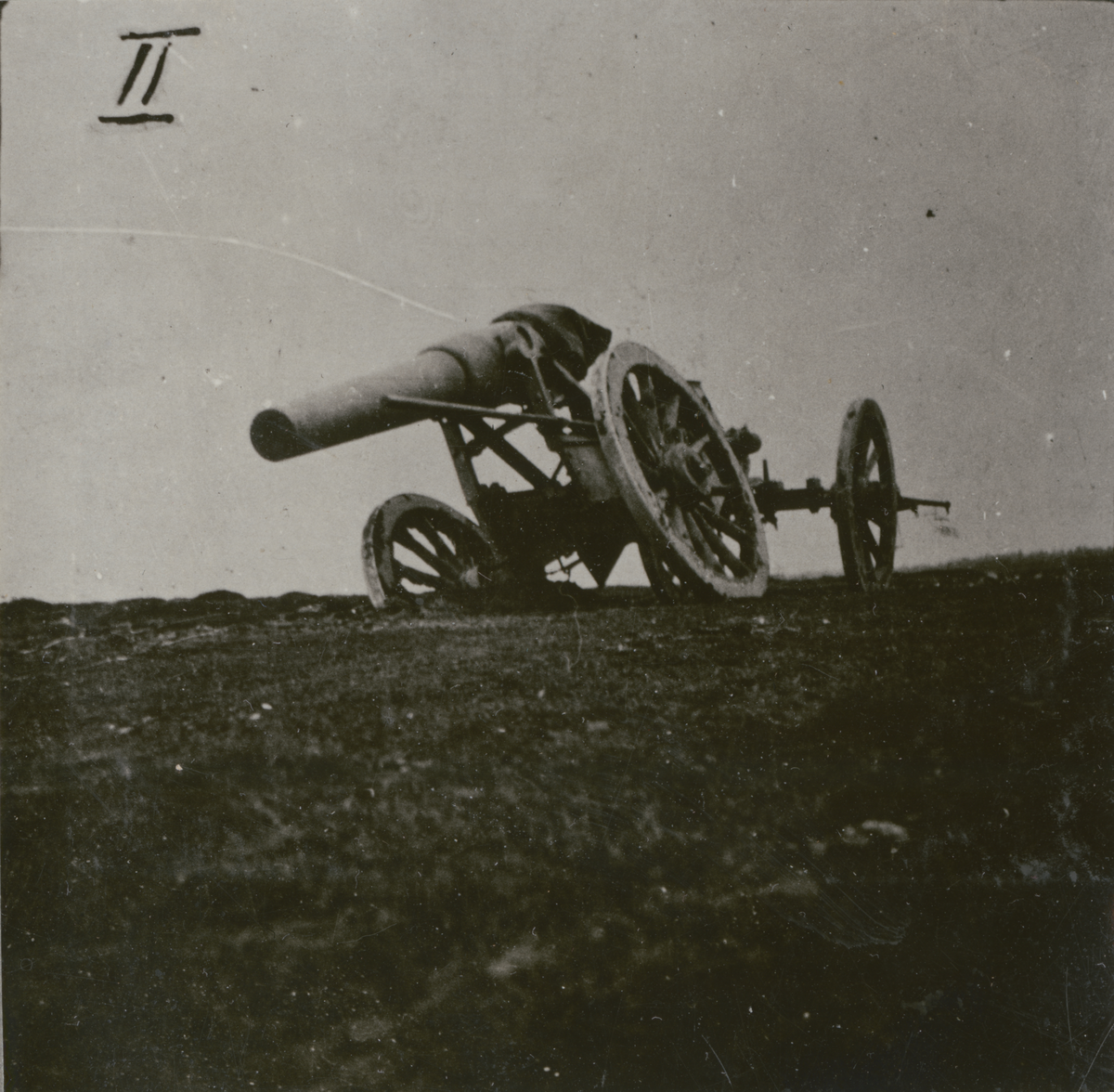 Titel: Text i fotoalbum: "Svårigheter vid transport af tungt artilleri på de bottenlösa ryska vägarna."