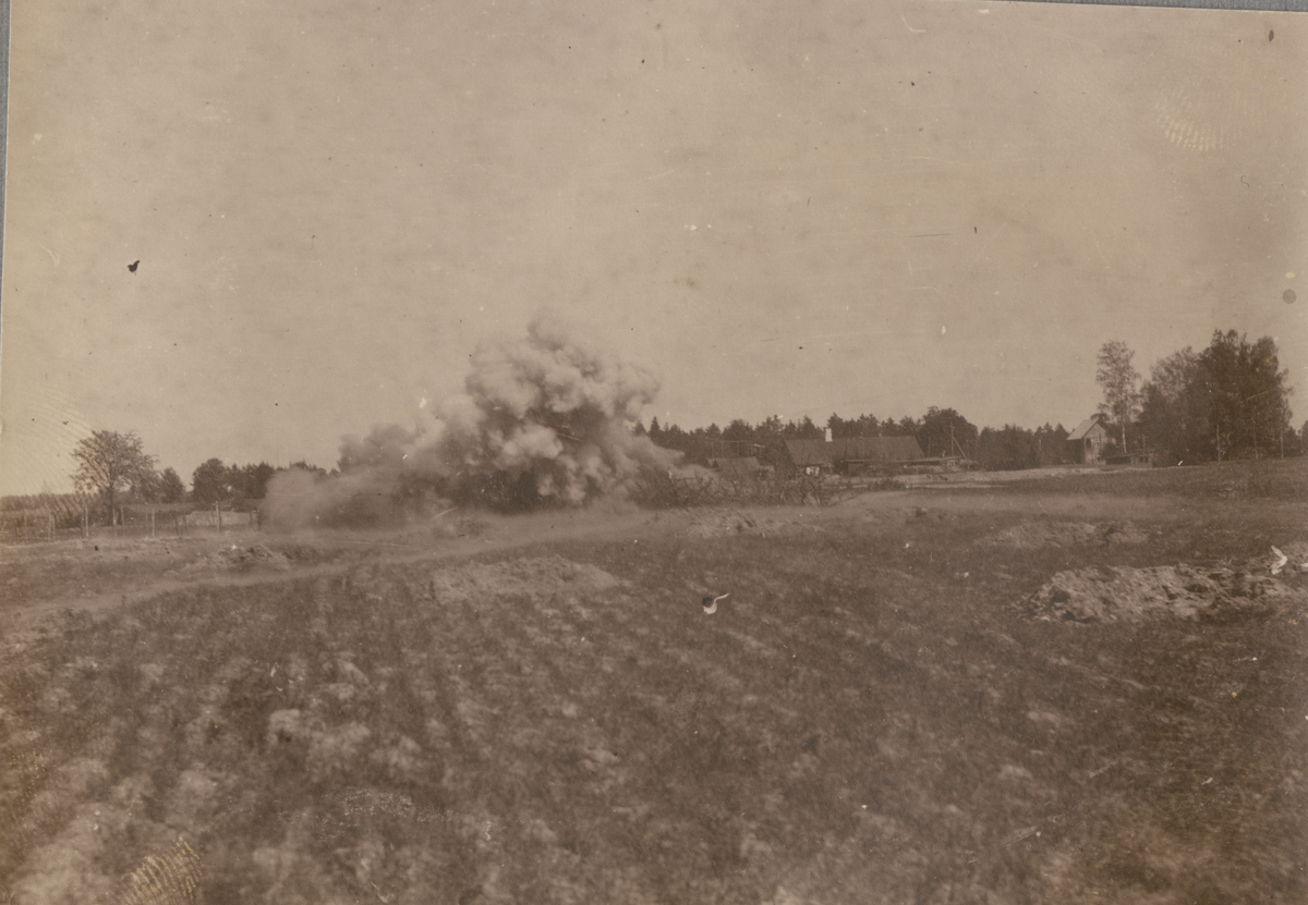 Text i fotoalbum: "Maj 1917. Besiktning af min stormgrupp vid Jaunsem-Zorndorf den 14 juni 1917. En af de många föröfningar för offensiven mot Riga i början på september 1917.