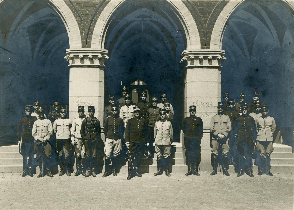 Grupporträtt av soldater och officerare vid Göta artilleriregemente A 2, 1915-1920.