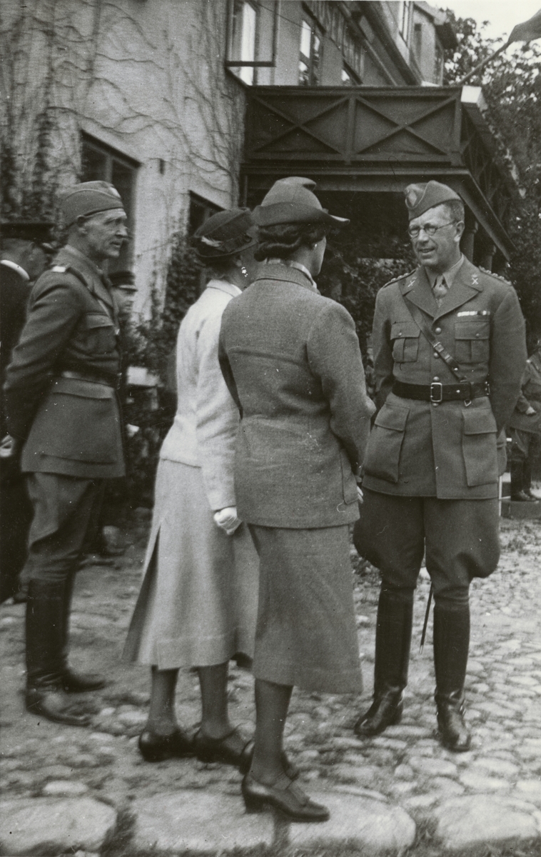 Titel: Text i fotoalbum: "Knäredmanövern. Kronprinsparet vid förbimarschen".