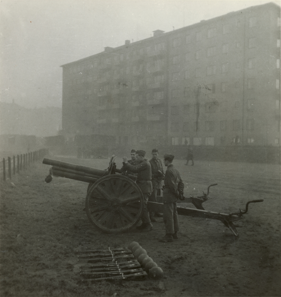 Pjäsexercis med 7,5 cm kanon m/1902-33, Svea artilleriregemente A 1, våren 1947.