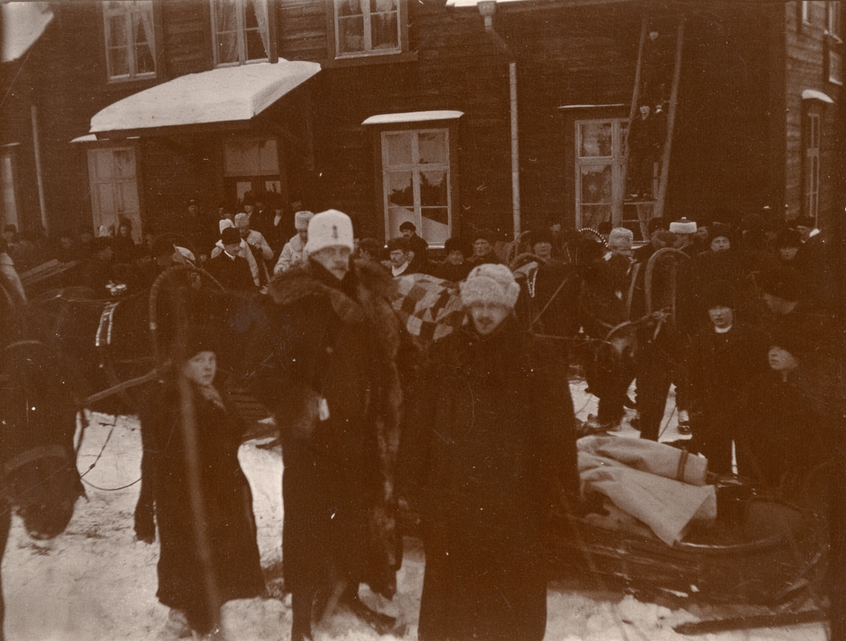 Titel: Smålands husarregemente K 4 förberedelse inför vinterövning i Norrbotten omkring 1910.