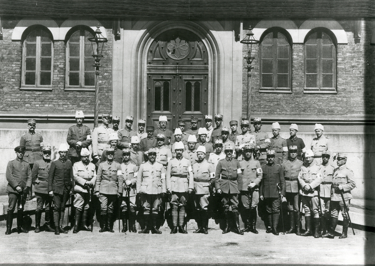 Finska frihetskrigets högkvarter samlat utanför riddarhuset i Helsingfors i maj 1918.