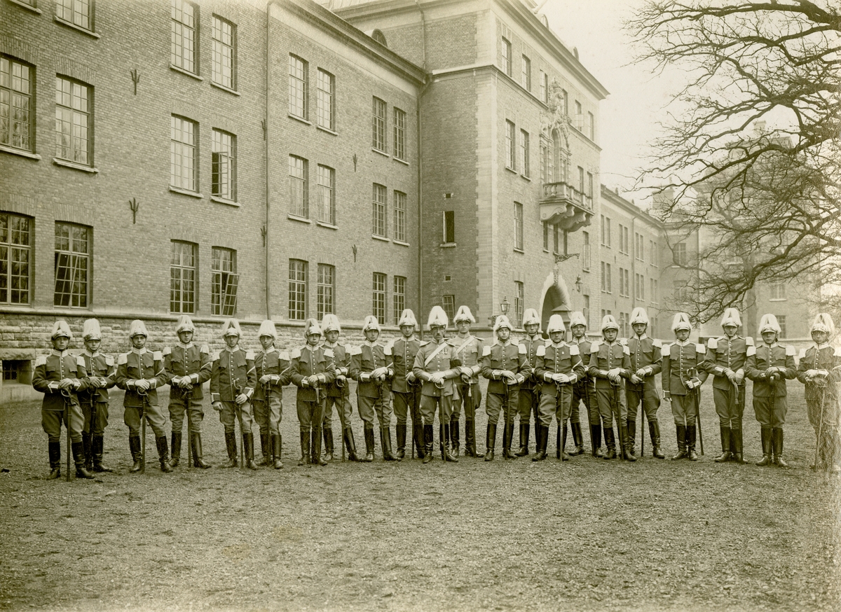 Grupporträtt av furirskolan vid Livgardet till häst K 1, 1920-1921.