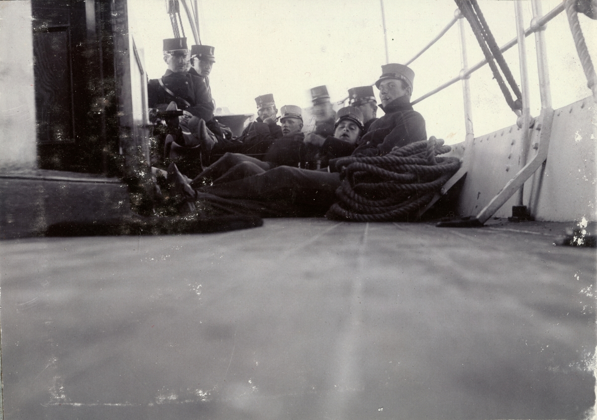 Soldater på båtresa på väg mot Läckö slott, Fortifikationen.